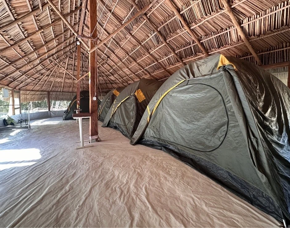 Our structure consists of spacious individual tents, equipped with comfortable double beds and a fan. The climate at night is quite pleasant, often with cooler temperatures. We have three shared outdoor bathrooms and a cozy restaurant that can accommodate up to 8 people.